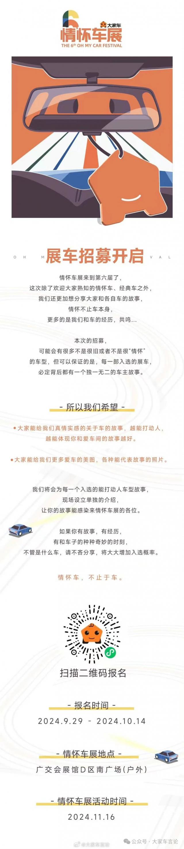 待定报名截止时间为 10 月 14 日期,期待大家报名,11 月 16 今天第六届情感车展现场一起玩!