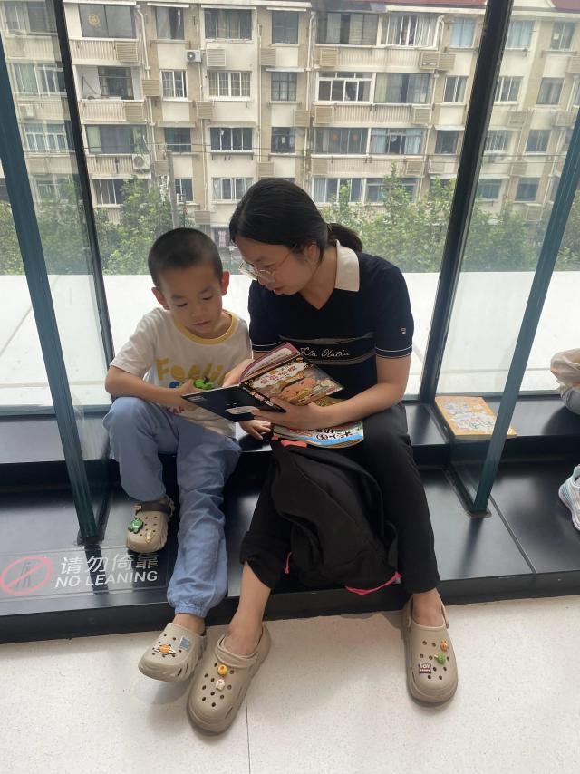 每一层楼,每一个角落,都能找到爱书人士的踪影。母亲捧着绘本,把书中的故事讲给活泼好动的孩子听。