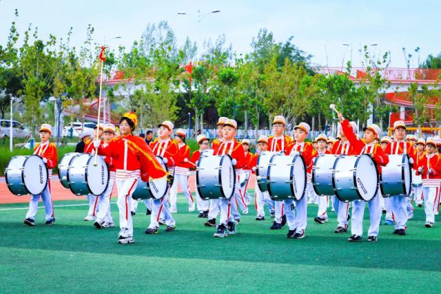 校园里,鼓号队稳重响亮的旋律祝福祖国。