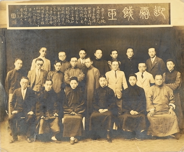 由于其独特的生存智慧,大量的信件、照片、日记、稿件一直保存到今天。考试合影,也很有意思,看看当时谁跟谁好,谁跟谁以后再起杯子里的事件。有一张题为“玉霜鉴会”的照片,数着人头,足有二十一人。题款人就是这场雅集主局画家吴天翁。在二十多岁的时候,吴天翁很早就认识了陆安邈,在世界上一起射文虎,猜灯谜。在“大中谜社”的成员中,还有丁悚,他和吴天翁制作的画谜别致有趣,非常吸引猜谜者。在画家中,吴天翁是社牛,朋友圈里的戏曲、艺术、文学、医学、商业都包罗万象。1930年中秋节,好客的是玉霜的主人程砚秋到上海接风,还送欧碧馆的主人黄玉麟去云南巡演,在冠生园举办宴会,叫朋友喝酒。主人和客人自然是坐在第一排的四个著名角色:赵桐珊、黄玉麟、程砚秋和王少楼。