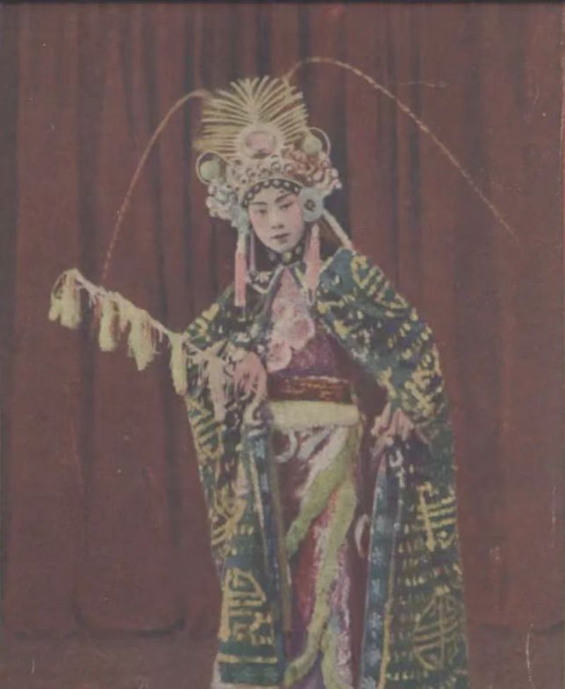 一九二五年,黄玉麟如愿步梅兰芳的后尘,出国演出,其中《风尘三侠》和《龙女牧羊》两部剧被特别标注为“新曲”,《龙女牧羊》梗概后标注为“龙女之舞特别值得一看”,显示出绿牡丹的创新。到目前为止,18岁的黄玉麟真的到了红紫的程度。画家吴昌硕曾经为之拍过一张题照:“散花送酒风格不一样,坐在梅边认不出真相”,这是对他演《天女散花》《宝蟾送酒》的描述,类似于梅兰芳。