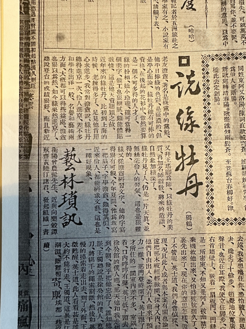 1921年,陆竹安在《大世界》报纸上发布了《绿芳红楼剧谈》和《欧碧馆主传》,称赞黄玉麟。陆竹安有很好的旧学根。因为绿牡丹,他很快成为了京剧专家的一半。