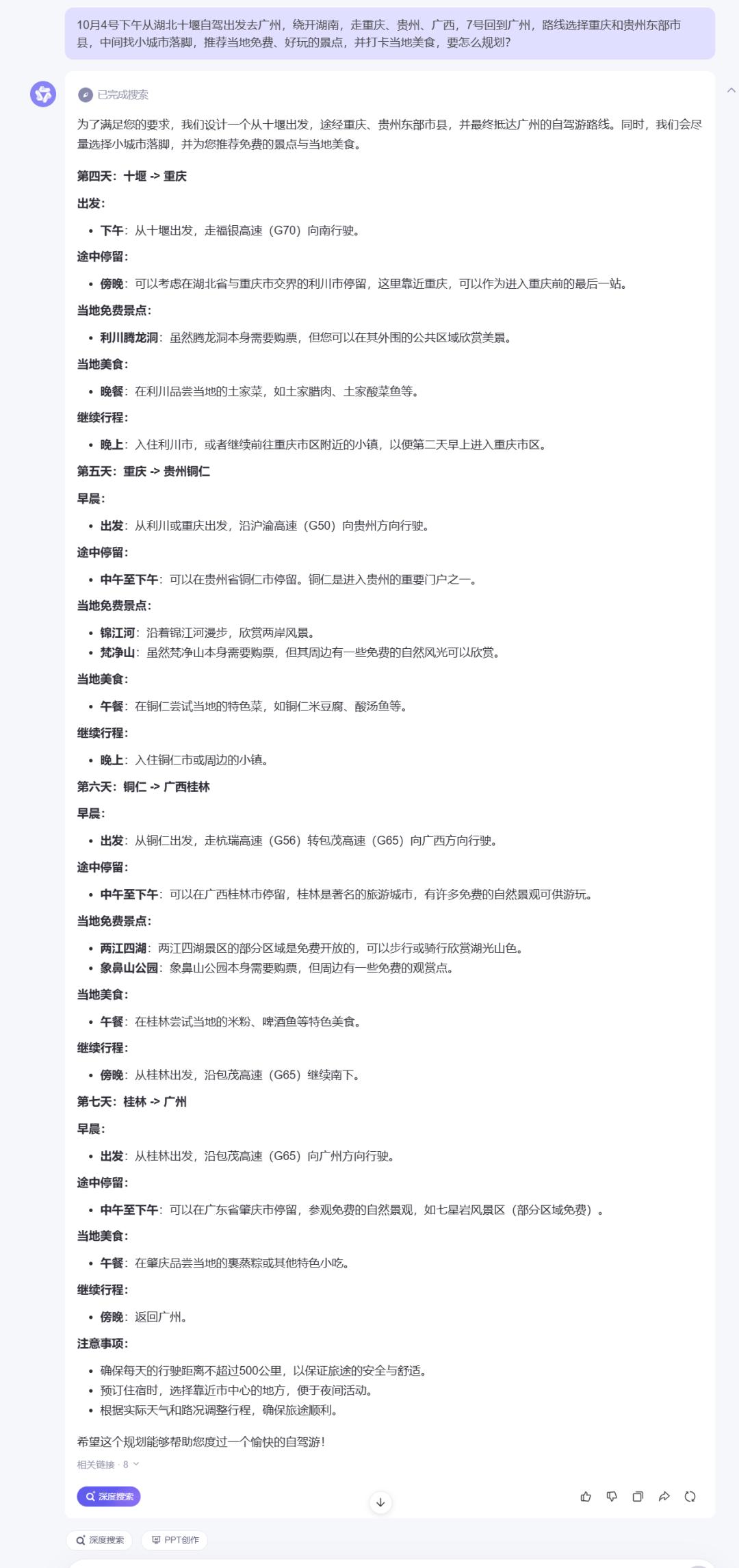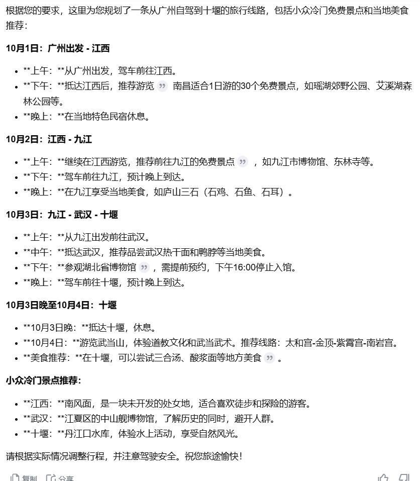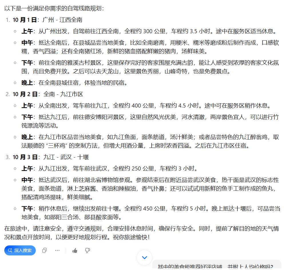 老狐当然不建议大家这么穷游,只是想借此展示一下。 AI 国庆旅游信息检索能力。