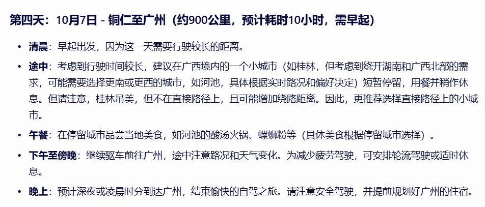 考虑到一路长途跋涉,尽量缩短距离,这是必要的。 prompt 上面有很多文章。参照广州至十堰的旅程,在旅途中间设置一个贵州东部的锚点,或者直接提出去重庆、贵州东部市县。