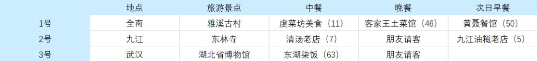 Kimi 给出了另外的选择,1 号到南昌,2 号到九江,3 中午到武汉,晚上到十堰,甚至 4 号码旅游目的地都有,选择的旅游景点也是森林公园、博物馆、东林寺等免费场所。