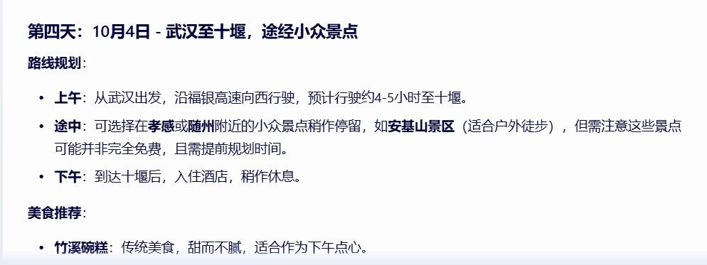 3 从九江到武汉有很长的路要走。豆包给出的计划是中午到武汉,参观湖北博物馆,然后品尝当地的美食,然后出发去十堰。