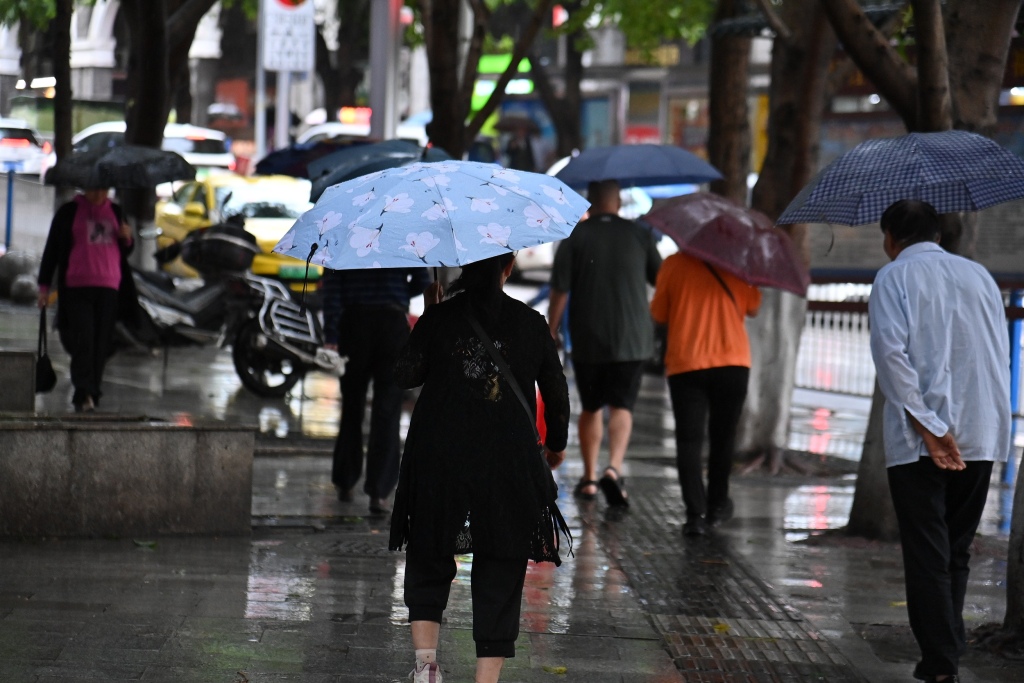 重庆市民于2024年9月30日冒雨出行。 视觉中国 图