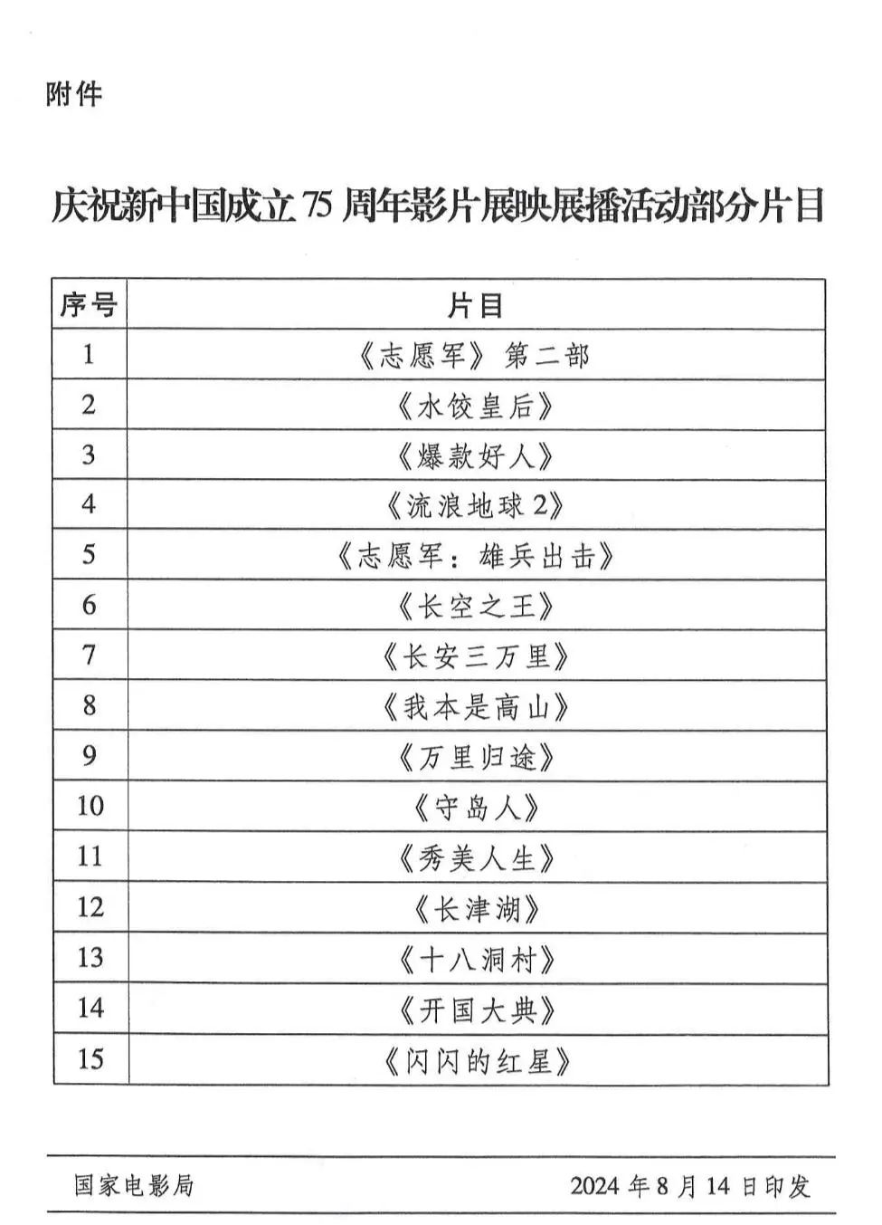 例如之前有消息称,“酱园弄”有望定档国庆节。在国家电影局发布的《75周年电影展播活动》中,马丽主演的《水饺皇后》最终还是要定档了。而且去年有传言说敦煌英雄要上国庆档,今年还是没有消息。此外,今年是金庸诞辰100周年。中国电影董事长傅若清曾透露,《射雕英雄传:侠客》计划今年上映,但最新动态是“后期制作”。