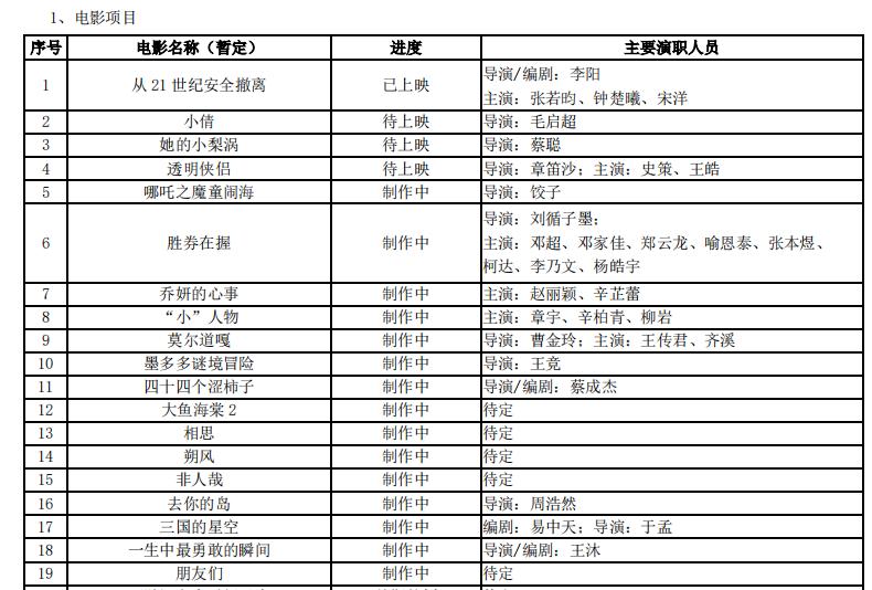 《乔妍的心事》(柠萌影业第一产品)已于10月26日上映。《胜利在握》(万合天宜第一产品)预计将于2024年上映,尚未上映。在中期报告中,有多达37个“前期准备”项目,但仍不清楚能否顺利启动。