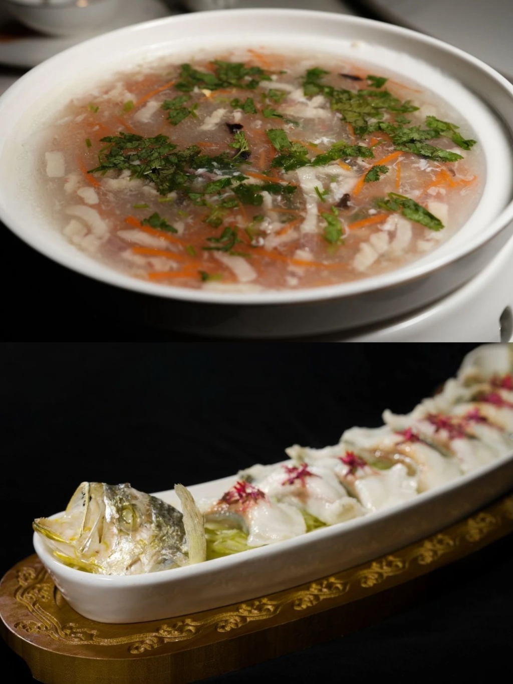 黄鱼汤(上)特色酸汤黄鱼饺(下)