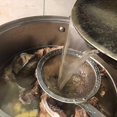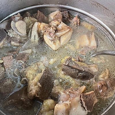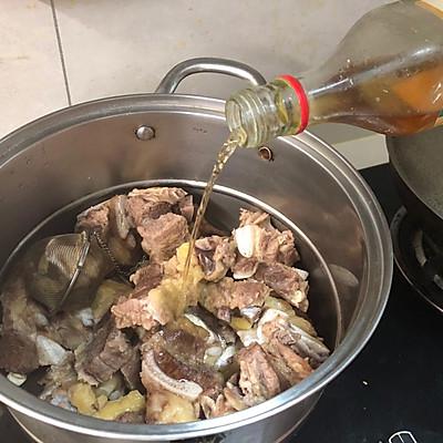 8、在锅里加入澄清的焯带骨牛排水