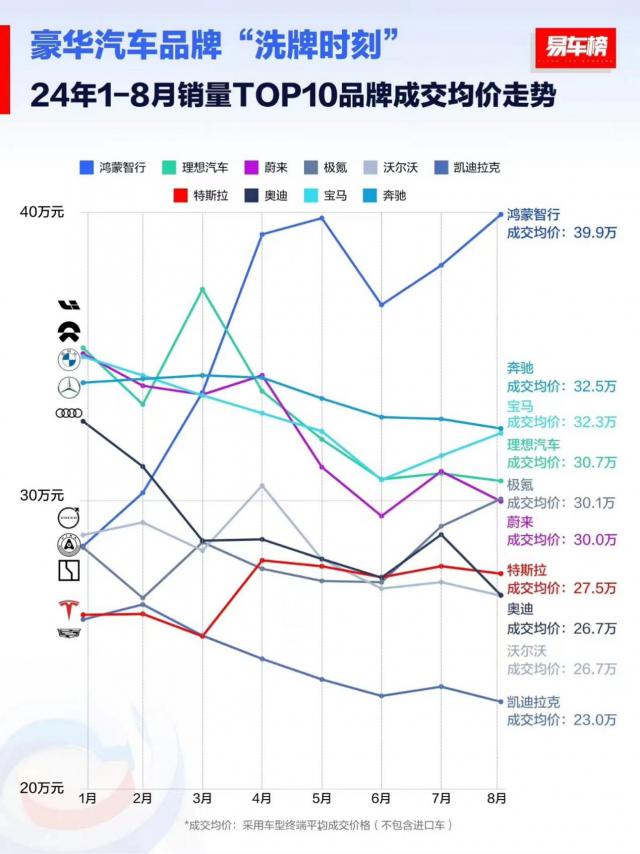 鸿蒙智行在 2024 年 1-8 每月的平均成交价格已经达到 39.9 一万元,远远超出传统 BBA 品牌。金九银十车企大战背景下, 5 月度蝉联汽车市场平均成交冠军。与奔驰、宝马、奥迪终端均价下降相比,鸿蒙智行实现了均价和销售的双重增长,成为高档奢侈品市场的新宠。这种鲜明的对比意味着智能汽车时代鸿蒙系统智能银行的强势崛起,更有力地证明了中国汽车工业在品牌化道路上的可行性和巨大潜力。