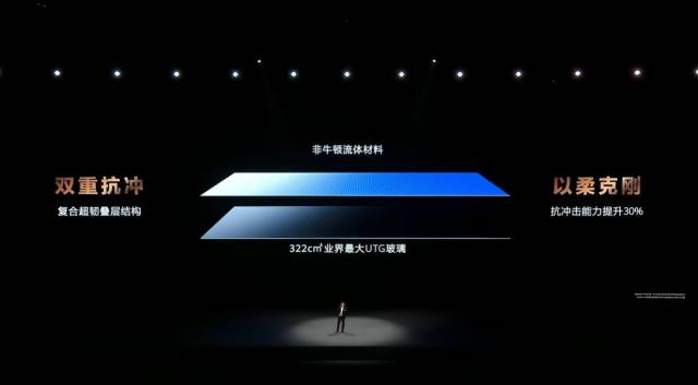 除了铰链问题之外,屏幕面板也是华为需要考虑的问题,华为在 Mate XT 非凡大师采用双重抗冲复合超韧叠层结构,高达 322cm ² 的 UTG 玻璃与非牛顿流体材料的结合,可以提高其屏幕的抗冲击性能。 30%,算是变相降低了用户后的使用成本。