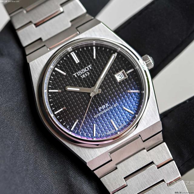 手表评价:PRX,继经典的黑白盘子之后,蓝色盘子、绿色盘子、冰蓝色风格等各种颜色后,天梭也使得这一系列品牌目前最热门的手表系列发挥了渐变色,推出了深蓝、浅蓝、蓝黑渐变两种效果风格可供选择。我更喜欢这种蓝黑渐变。这次新的渐变盘作品,首先放在了第一位。 40 在mm尺寸上,这个尺寸与上面相结合 10.8 厚度mm,主要推广黄金尺寸的男表和舒适的佩戴触感,就是现阶段。 PRX 最为流行的尺寸。还有手表圆形表圈在装饰上是抛光装饰,外壳则是大部分拉丝,边缘棱角抛光更换。在与华夫格纹盘面搭配后,可以看到蓝黑渐变效果,更加突出盘面质感。这种渐变色也是由黑到下,慢慢地运转到蓝色,底部还融入了一抹紫色调,效果不错。表盘 3 点多还有日期窗口。Powermatic 80 机芯自动上弦,80 小时动储,23 钻,具有 100 大米防水功能。机芯也安装 Nivachron 抗磁性游丝,能有效避免磁场干扰。配有一体式精刚表链,还配有快拆系统,方便更换不同材质的表带,满足佩戴者不同佩戴需求。