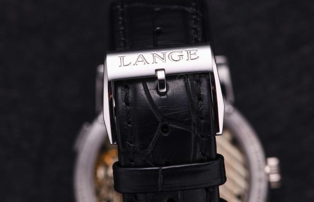 这款朗格 1 在世界范围内,手表配有黑色手工缝制鳄鱼皮表带,白金组合 950 针扣,以此结合 10.9 厚度为毫米的表盘,极具舒适性,同时更突出朗格造表的优雅感。从第一代朗格开始可以说 1 到目前为止,世界上的手表不仅重新呈现了朗格的经典技术和审美,而且以更现代、更实用的方式呈现。(图 / 文 腕表之家 YIYI)