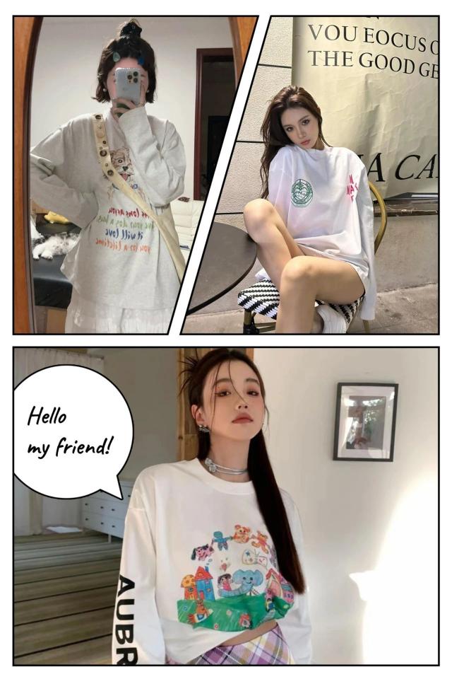 秋冬长袖 T 恤最好选择新疆长绒棉作为布料,100% 纯棉,透气不闷,像猫的肚子一样软糯。