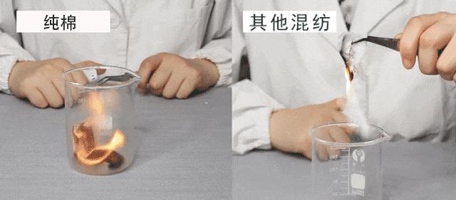 其它混纺面料在右侧燃烧不完全,还有一股臭味。