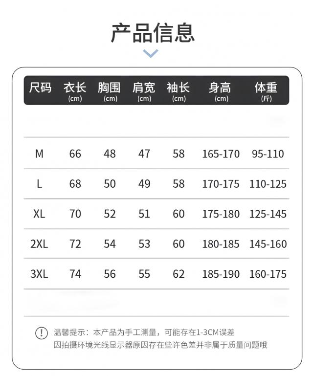 共有 M/L/XL/2XL/3XL 几个尺码,95-175 斤都能穿!
