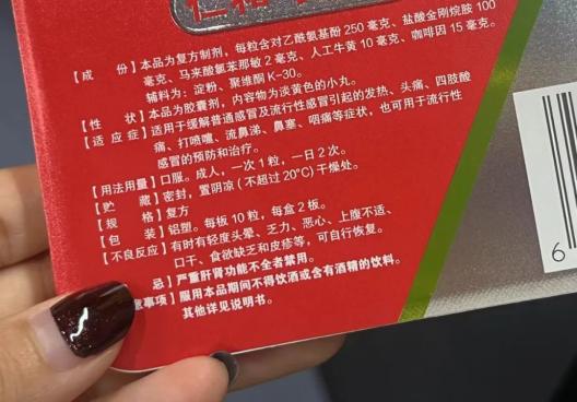 由于市场上的感冒药大多是复方药,这里的感冒药「对于乙酰氨基酚」是「成份名」而非「药品名」,每个人都需要检查药物成分表的识别确定