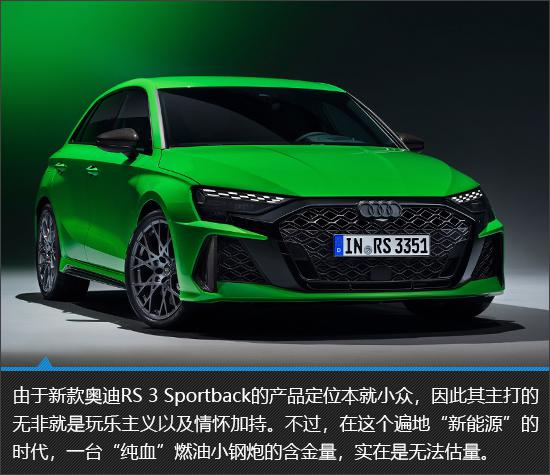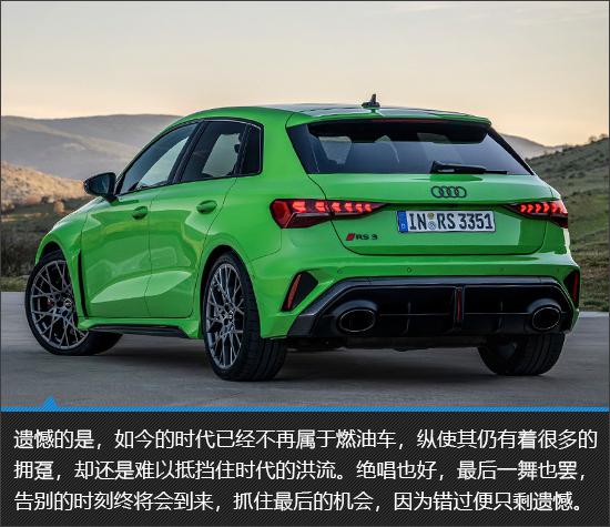 毫无疑问,这是一个时代的终结!因为早在几年前,奥迪就正式宣布不再推出基于内燃机动力的下一代车型。新奥迪作为结束前最后的疯狂, RS 3 Sportback 看起来并没有带来太多的惊喜,其实是因为这一代车型原本已经耗尽了奥迪工程师的全部心血。绝唱梦中情车,或许将来只能永远留在记忆中,有遗憾,但这才是人生的本质。