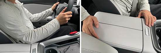 前排中央扶手面积大,包裹柔性皮革,触感舒适。中央扶手虽然不支持前后移动或角度调节,但在驾驶过程中可以为驾驶员肘部提供有效支撑。