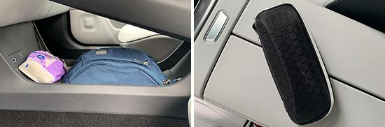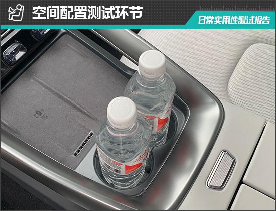 对车内使用空间的检测,仅针对前排触手可及的空间,不包括需要启动的空间,如手套箱、中央扶手箱等。测试方法是将以下所有固定物品放置在前排的每一个储物空间中,通过固定物品的放置状态来判断车辆储物空间的性能。检验选定的固定物体如下:2 一瓶常规大小的矿泉水, 大屏幕手机,1 支口红、1 个挎包、1 副墨镜、1 把折叠伞和 1 包装常规尺寸的抽纸。