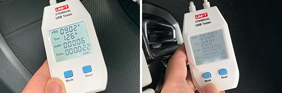 另外,我们还测试了充电插座的电压和电流,其中前排 Type-C 充电插座的电压和电流分别是 9.02V 和 1.26A;后排 Type-C 充电插座的电压和电流分别是 5.06V 和 2.02A。