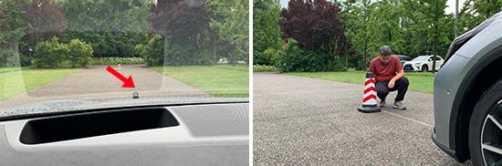 我们采用了前视野测试环节的高度。 70cm 以桩桶为参考,然后调整车距,直到主驾驶座可以看到桩桶的上缘。经过测试,桩桶和车前最后测量的数据是 在测试过的同级别车型中,1.74m处于上游水平。