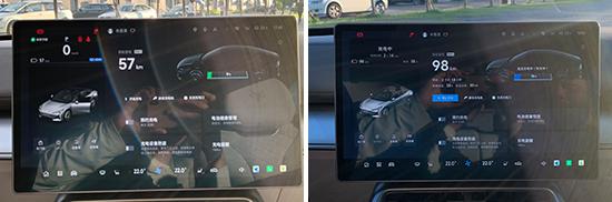 我们还测试了充电效率,测试人员使用快充桩充电。 10 几分钟后(波峰用电),电量从 9% 充至 续航里程提高15%。 41km,与车辆计算机预期的耗时基本一致。