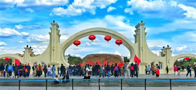 在太阳石广场前,举着红旗,脸上贴着红旗拍照打卡的乘客也很拥挤。每个人都很有礼貌,排队拍照,不挤不抢,充满了“放松感”。当你进入太阳岛公园的正门时,观光巴士会排很长的队。有些游客走路,包着大包小包,带着孩子结婚,但他们也有步行和品尝美丽风景的快乐。