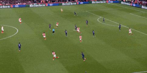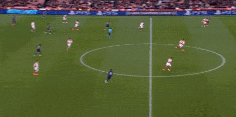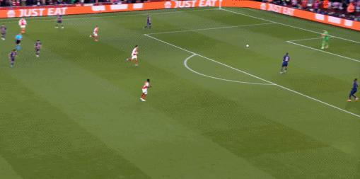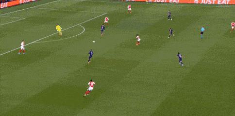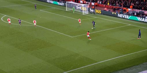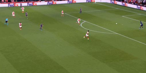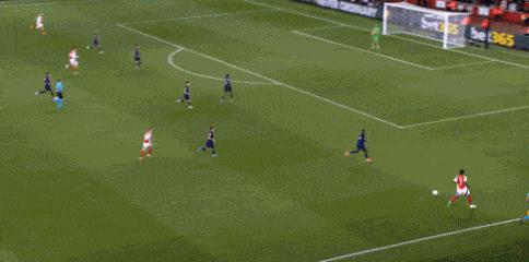 由于如同第 8 在几分钟内,阿森纳通过横移找到了右边的萨卡,这是一个内切射门的过程: