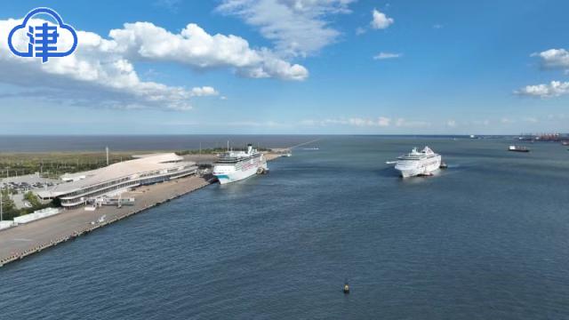 在国庆假期的第一天,东疆迎来了今年第一次母港航道双轮同靠。在蓝天白云的映衬下,“理想”号游轮,“爱达” · 地中海号游轮缓缓靠近港口,在海面上划出一道美丽的弧线。他们将从邮轮母港出发,携带 4000 许多游客带着对祖国母亲的热爱,开始了国庆海上之旅,展示了东疆作为北方国际航运中心的实力和风采,也体现了海陆交融的独特魅力。