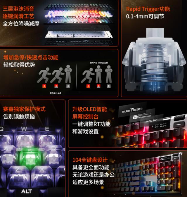但幸运的是,性能和触感并不是衡量磁轴键盘的唯一标准,更自由的参数设置使得磁轴对驱动的依赖性明显高于传统键盘,这也是目前国内外品牌的主要区别。以赛瑞为例,它专门开发了一系列功能技术来保护和快速点击磁轴键盘,包括防止意外触摸(这个功能在低触发行程时非常必要)。
