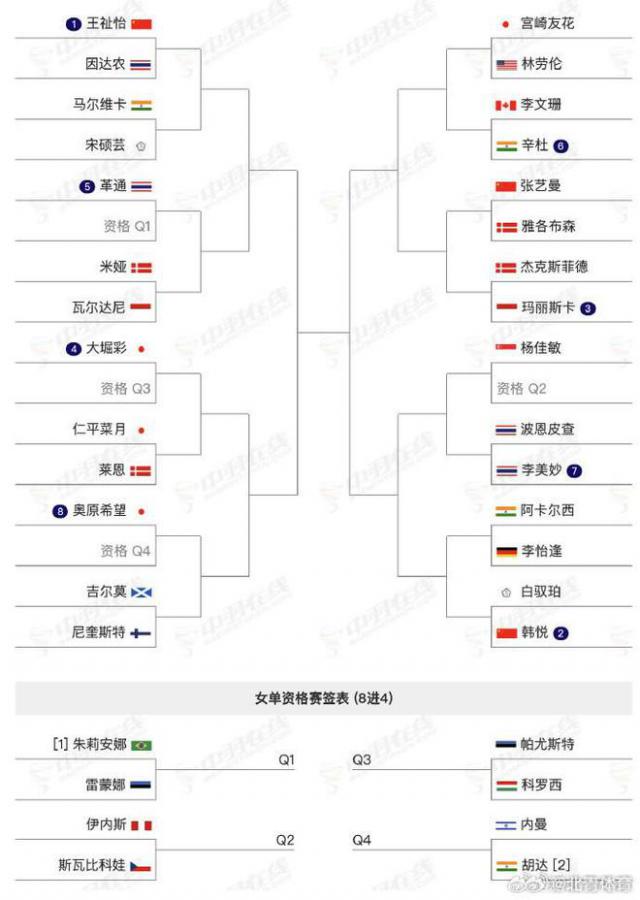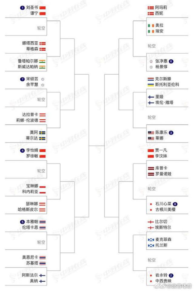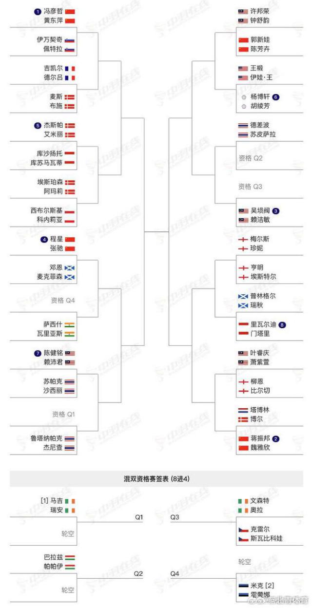 以下是中国队的单项签表对战。