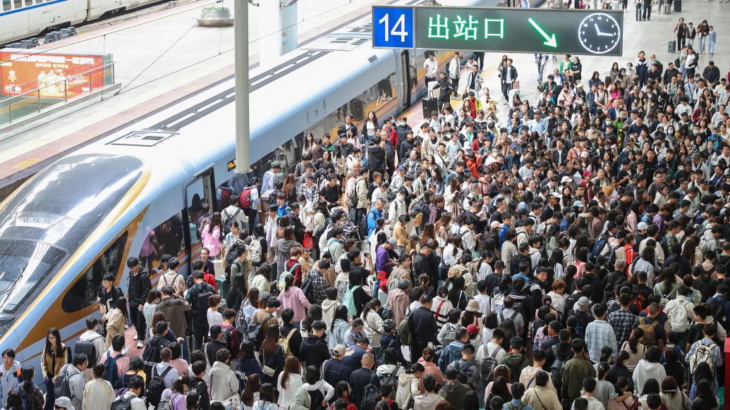 旅客于2024年10月1日在南京火车站下车。视觉中国 图