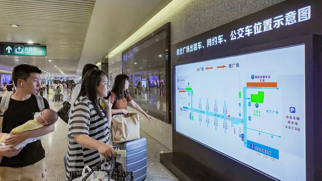 南铁各火车站为了让乘客在假期出行时感觉更好,纷纷提高服务措施。新余北站开设“渝快行”引导带,开辟“潮汛”通道,提升客流高峰时段的行进路线,缩短排队时间,引导乘客有序出行。景德镇北站在出站通道设置明显的引导标志,引导乘客方便换乘公交车、出租车等。同时,在出站口设置了30多个座椅,为前来接站的人提供了一个舒适的等待场所。