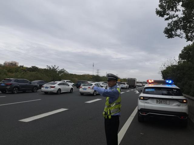 当警察到达现场时,他们发现拥挤的原因是一辆事故车停在车道上,导致后面的车无法通过。警方立即与现场相关人员一起将车推到路边,恢复了道路通行。