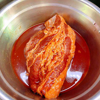 2、自腌叉烧,今天不烤,直接用大火蒸。 15 分钟