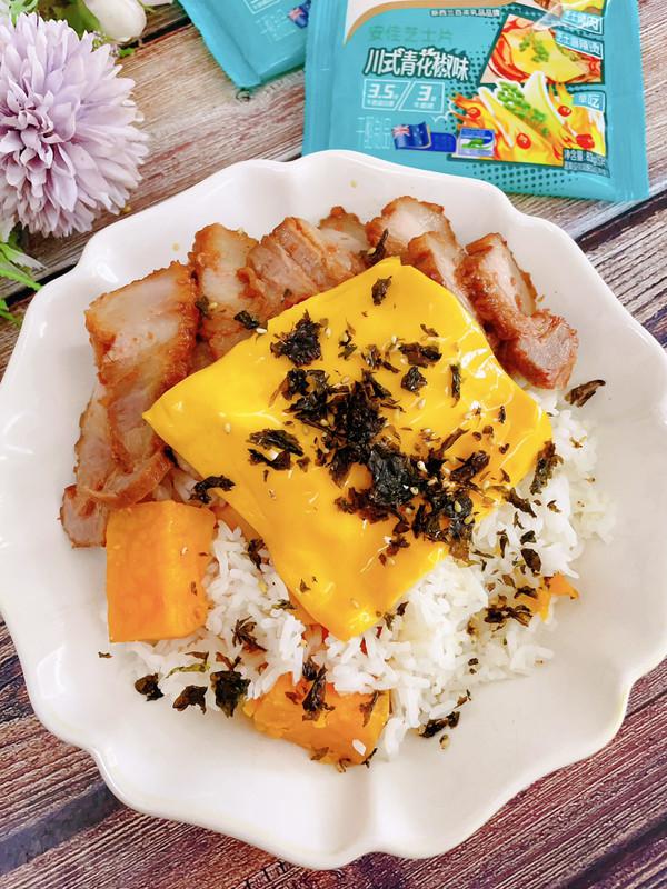 7、撒上拌饭海苔即可享用! 安佳川青椒奶酪是一项大胆成功的美食实验。它不仅挑战了传统,还创造了新的美食可能性,让餐桌上的每一刻都充满了惊喜。