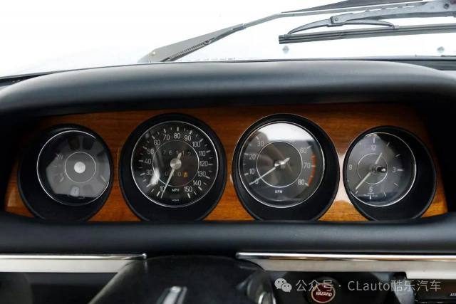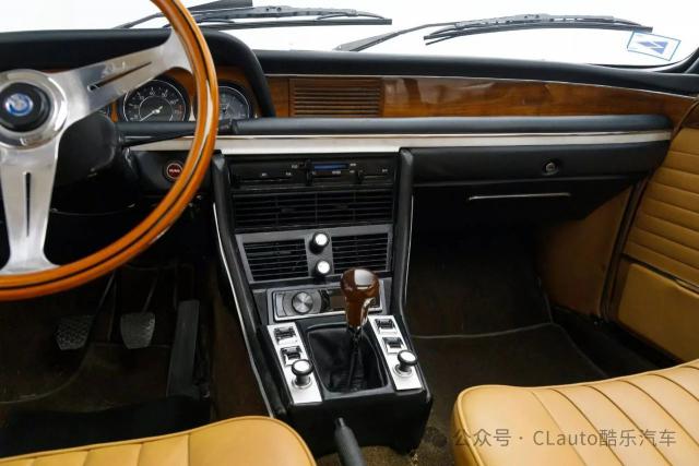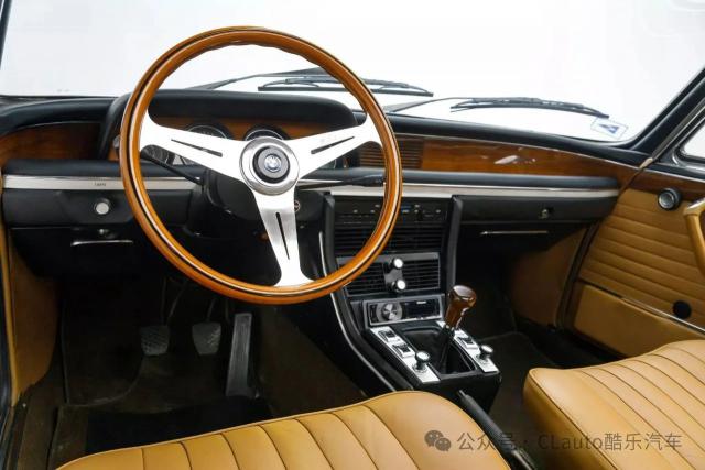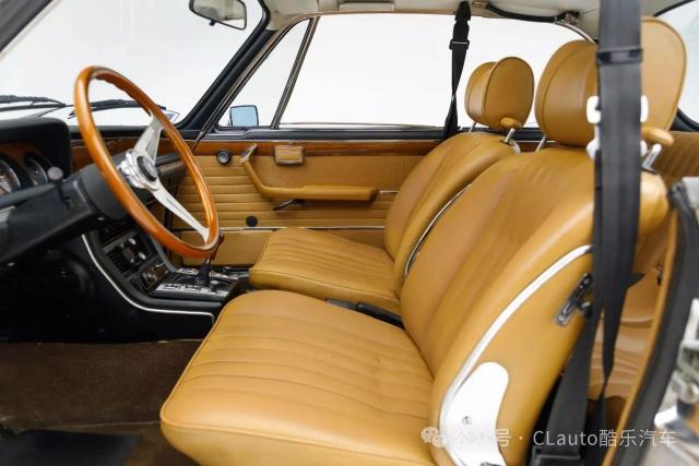 内饰部分,是经典的 70 时代风格,包括一个木制的三个方向盘,座椅和门的内饰都是棕色的皮革,还有很多额外的木质装饰条,除此之外还配备了新的。 Pioneer 音响系统,空调和电动车窗。