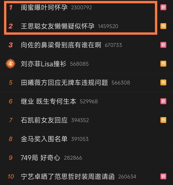 虽然 21 这个世纪已经开始20多年了,但是今天娱乐圈的热搜榜上突然出现了两个疑似怀孕的网络名人话题。“王思聪的女朋友懒得怀孕”和“女朋友曝光叶珂怀孕”相继登顶热搜榜,引起了不少网友的热议。