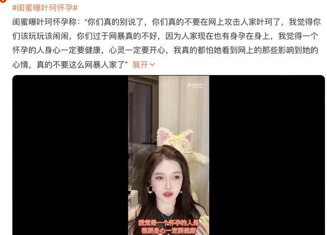 前不久,叶珂最好的朋友爆料叶珂怀孕了,呼吁大家不要在网上暴露叶珂,并表示担心叶珂会在网上看到她的言论,从而影响她的情绪。