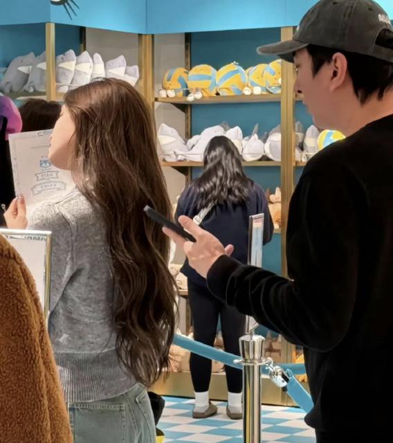在曝光的照片中,我们可以看到懒惰专注地排队等待娃娃的制作,而王思聪则侧卧把手放在懒惰的身后,专心刷手机。