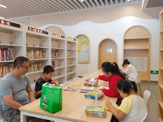 除展览外,深受小朋友青睐的是位于一楼的儿童图书馆。有些孩子在父母的陪伴下,静静地坐在儿童区的书桌前读书。王女士一大早就带着孩子来看书,孩子们旁边放着一堆书,都已经看完了。"国庆假期外的旅游景点人山人海,我们不出去看热闹。来到图书馆很安静,孩子们也喜欢看书。所以只要有空,我就陪他来这儿。"公民王女士说。
