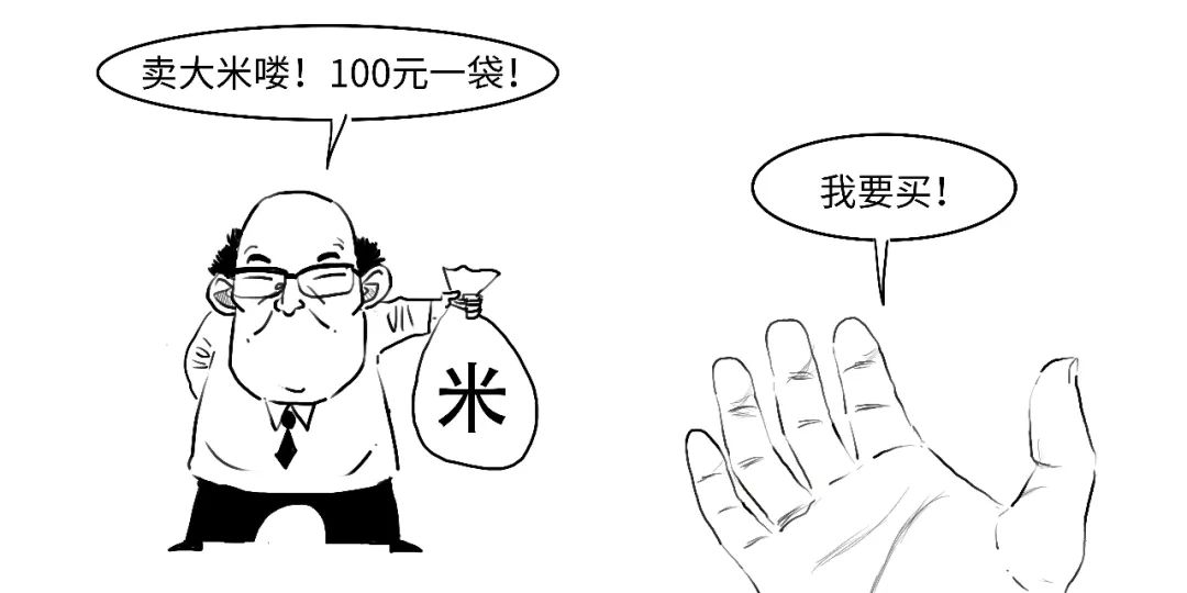 过了一会儿,果然如你所料,大米的价格开始暴跌,变成了一袋60元。