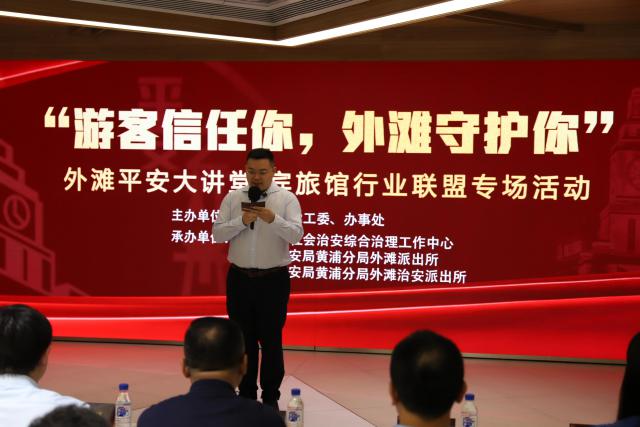 9 月 30 日本,“游客信任你,外滩守护你”第九届外滩安全讲堂暨宾馆产业联盟在外滩党群服务中心举行。活动期间,宾馆产业联盟正式成立。