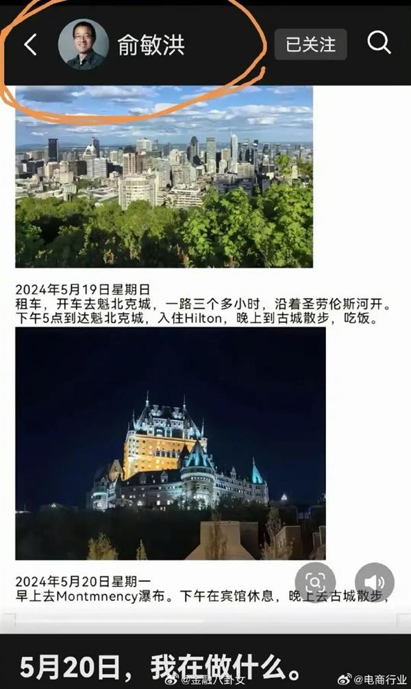 俞敏洪 18 点击发送文件,说出自己 2024 年 5 月 20 他每天都在做什么?他早上去蒙特利尔看瀑布,下午在酒店休息,晚上去古城散步,晚上在酒店写蒙特利尔和魁北克的游记。 12 点击。并贴出机票。