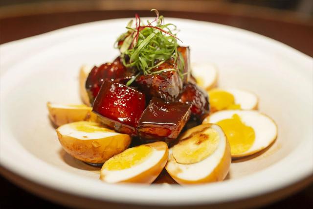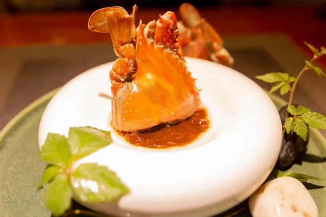 墨鱼茄子汤,卤蛋烤肉,瓦鸡,倒捧白蟹,双狮土豆,柴桥炒菜。