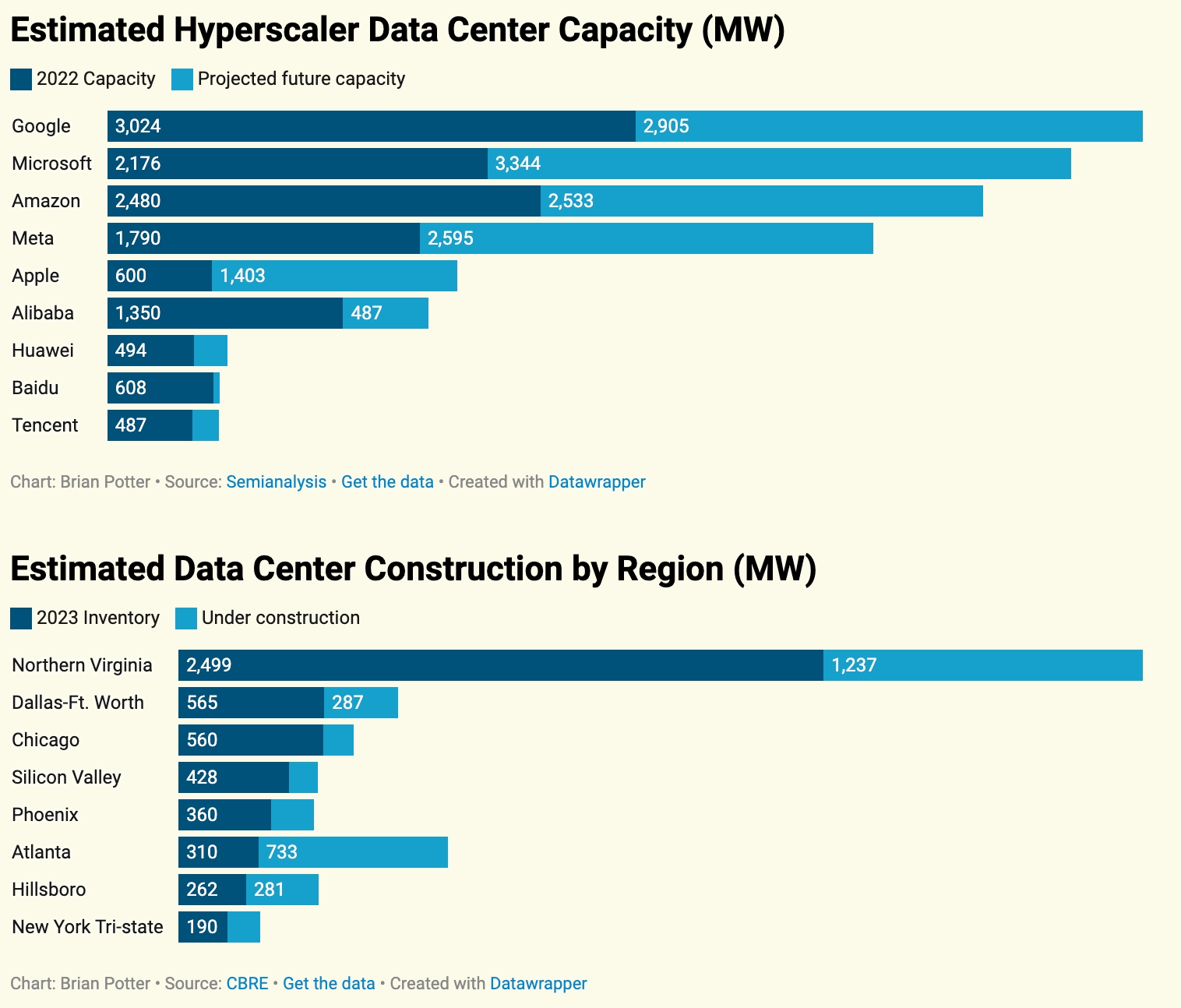 她们会自己或者通过 QTS、Vantage 或 CyrusOne 等待开发商这样做。他们购买了数据中心的房地产,这些房地产靠近边缘,电力充足,价格低廉。他们已经获得了数据中心的大部分黄金地段;现在,他们主要根据电力的可用性来选择地点。电力将继续成为计算需求的瓶颈,超大型公司知道这一点。