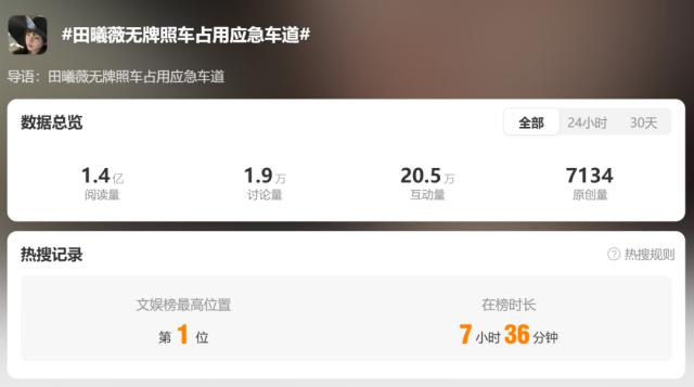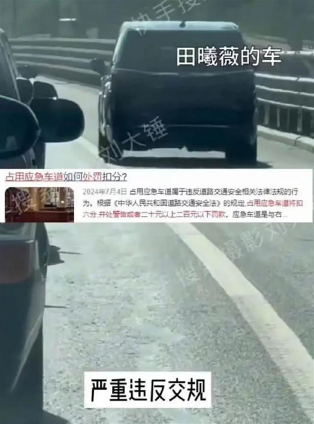 10 月 2 日前,有网友发布视频称,演员田曦薇乘商务车从机场返回酒店,无牌照汽车一路占用应急车道,严重违反交通规则。